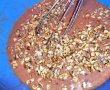 Intr-un vas mai mare amestecam faina, zaharul, praful de copt si cacaoa, iar peste, punem apa, uleiul si esenta de rom. Amestecam cu un tel,astfel incat sa nu se formeze cocoloase, dupa care adaugam nuca. Amestecam bine si turnam compozitia intr-o tava tapetata cu hartie de copt. Dam la cuptorul preincalzit 180° pt circa 30 minute (facem testul scobitorii).