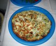 Intr-un bol amestecam ouale batute cu ceapa taiata marunt,de asemenea si mararul,cascavalul,sare,piper si rasturnam in tigaia cu unt incins;punem capac,lasam focul mic,dupa 5min.intoarcem omleta,dupa alte 5min,o rasturnam pe un platou,o rulam,facem cateva crestaturi unde punem intercalat rondele de rosie si castravete,ornam cu marar si servim.