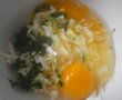 Intr-un castron se rad branza si cascavalul, se adauga ouale si mararul spalat si tocat marunt. Se pune sare si se amesteca.