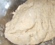 Adaugam faina, framantam pana obtinem un aluat elastic, la final adaugam cele doua linguri de ulei din in, framantam pana se desprinde aluatul de maini.