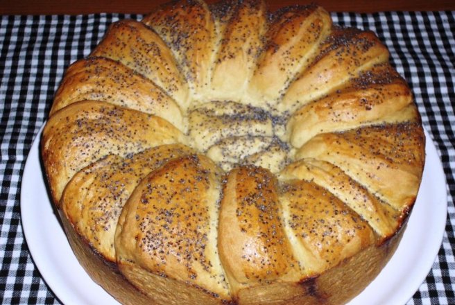 Din toate ingredientele preparam un aluat,pe care il lasam circa 45 de minute. Impartim aluatul in 2 parti si intindem o foaie cat mai subtire posibil(cu ulei pe masa de lucru,nu faina).Am uns foaia cu ulei tinut la cald.Am rulat bine foaia si am taiat felii de 2cm si le-am asezat in forma ,in mijoc am pus capetele.Am lasat sa mai creasca 45 min si apoi am uns cu ou si am presarat mac.Se coace pana devine usor aurie la suprafata.
