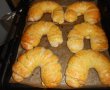 Apoi intindem cu sucitorul un dreptunghi (vedeti in fotografii) o parte crestam fasioare nu foarte lungi iar pe cealalta parte asezam merele calite si intindem bine, apoi pliem marginile laterale, sa nu iasa umplutura si dupa aceea rulam si dam o forma de potcoava.