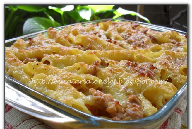 -peste pastele bine scurse se adauga compozitia de carne,se amesteca