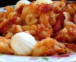 Pastele se fierb cca 20 de minute (se verifica sa fie gata) apoi se scurg bine si se lasa deoparte pana e gata sosul.