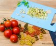 Dupa dezmatul culinar de sarbatori, incercam sa ne orientam catre preparate usoare, fara carne preferabil, in care predomina legumele, fructele si pastele. Am pastrat aceste paste pe care le-am cumparat din Italia, in mod special pentru a le consuma in pragul sau dupa sarbatori, dupa asaltul de sarmale, carnati si dulciuri pe mese, pe care din fericire in mare parte doar le-am privit ce-i drept. Dupa excese este indicata o cura de dezintoxicare sau macar detasare o vreme de la gretosagurile cu care ne-am infruptat timp de vreo doua saptamani. Mi-au placut enorm modelele cu specific de sezon iernatic si le-am gasit potrivite pentru a fi consumate acum, ca doar la vara nu mai aveau niciun farmec. Asortate cu sos pesto si parmezan, merg perfect si vin la timp dupa excesul de proteine ingurgitate de sarbatori.
