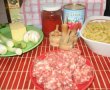 Ceapa se taie marunt si se caleste in ulei adaugam apoi usturoiul taiat marunt.Dupa ce s-au calit 2-3 minute se adauga carnea tocata si se caleste si ea cam 10 minute.