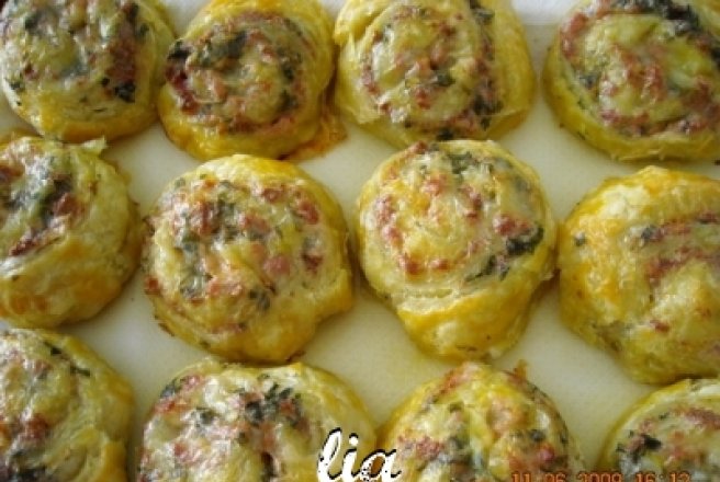 Se ia foaia de placinta, se intinde amestecul pe toata suprafata ei, dupa care rulam foaia si strangem aluatul la capete.