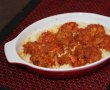 Se calesc bine, apoi adaugam sos de rosii cat sa le acopere bine si sare. Mai lasam un pic la fiert si apoi le blenduim bine. Punem din nou la fiert si adaugam restul de sos de rosii.