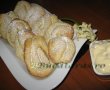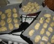 Cand aluatul s-a dospit, se scoate din cuva si se intinde pe masa infainata, intr-o foaie subtire de 0,5 cm. Se intinde crema de vanilie rece, apoi se ruleaza intr-un sul si se taie rondele de 1 cm, cu un cutit bine ascutit si dat prin faina.