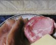 Foaia de aluat am pus-o la dezghetat dupa care am taiat-o in 4.Pieptul de pui l-am taiat longitudinal si au rezultat 4 buc pe care le-am prajit in ulei.Pe fiecare bucata de aluat am pus pe diagonala 2 felii de ceafa,peste o buc.piept de pui ,peste o felie de cascaval si le-am invelit tragand colturile de aluat peste umplutura cat mai strans si am apasat bine sa se lipeasca.Am batut un ou intr-un castronel si am uns pe deasupra rulourilr(sa le zicem asa)am pus hartie de copt in tava de la aragaz,am asezat rulourile in ea si le-am bagat in cuptorul incalzit in prealabil,la foc mic 15 min.