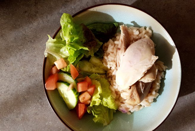 Puiul intreg se fierbe in supa, la foc mic 1.5 ore, indepartand spuma de cateva ori. La final, ar trebui sa mai ramana 1.5 litri de supa. Se transfera puiul pe o farfurie si se lasa putin la racit. Intre timp, se indeparteaza destula supa cat sa mai ramana 1.25 litri de supa. Supa indepartata se pastreaza intr-o craticioara.