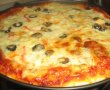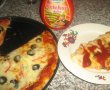 Ungem foaia de aluat asezata in tava cu putin Ketchup Univer, presara, busuioc si rozmarin uscat, asezam ardeiul taiat fasii, apoi rondele de mozarella, maslinele, iar la final presaram cascavalul ras.
