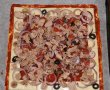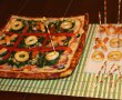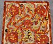 Coaceti pizza la cuptor preincalzit, aproximativ 25-35 de minute la 200 grade, pana se rumeneste frumos.
