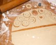 Intindem foi de 4mm grosime si din aluatul alb decupam forme de zero (4cm diametru). Daca n-aveti decupatoare (ca mine),