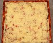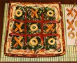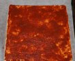 Dupa 15 minute se scoate si se imprastie deasupra mararul dar protejand cu hartie mai la interior marginile ca sa obtinem efectul contur rosu, contur galben de la cascaval si campul verde in mijloc.