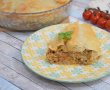 Aveam niște carne de vițel primită și nu știam ce să mai pregătesc cu ea. A ieșit o plăcintă delicioasă, care a fost apreciată de toată familia. Puteți folosi și amestec de carne de porc cu vită, sau doar de porc.