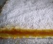 Se scoate aluatul,se imparte in doua si se intind doua foi. Se unge o tava cu ulei ,se presara cu faina si se aseaza prima foaie, se repartizeaza umplutura racita si se acopera cu a doua foaie. Se inteapa din loc in loc cu o furculita si se da la cuptorul deja incins pentru 25-30 minute. Se lasa sa se raceasca si se pudreaza cu zahar si scortisoara.