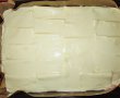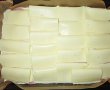 Pudram aluatul cu gris si adaugam un strat de muschi file un strat de piept de pui file si un strat de cascaval asa cum se poate vedea mai jos.