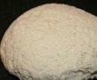 Intr-un bol punem faina , facem o scobitura in mijlocul ei si adaugam maia-ua obtinuta mai sus, sarea, si apa treptat. Amestecam cu o lingura, apoi framantam cu mana si lasam aluatul obtinut la dospit 30 de minute.