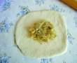 Pe masa bine infainata puneti cate o bucata de aluat de marimea unui pumn, intindeti bine cu sucitorul sa fie cam de jumatate de centimetru de groasa. Se umple cu o lingura din umplutura preferata, se strang marginile, se infaineaza din nou si se intinde cat de mare va e tigaia sau cat sa nu iasa afara umplutura.