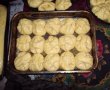 Intinzi aluatul pe o suprafata presarata cu faina ,rupi bucati mici si le intinzi cu sucitorul .Pui din umplutura de branza ,apoi strangi capetele la mijloc. Ungi cu albus de ou batut ,le pui in tavi unse cu ulei.Arzi cuptorul si le dai la copt.Cand s-au copt,cam dupa o oara,le scoti din cuptorul de paine si le presari cu nuca de cocos.Le lasi sa se raceasca putin.