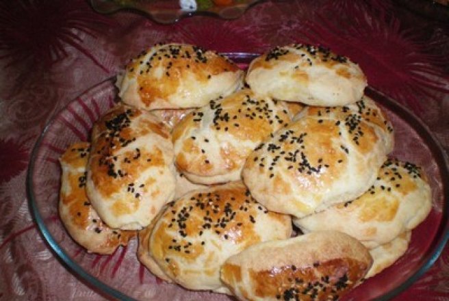 Margarina se bate spuma,se adauga casul de oaie framantat sau cascavalul si se framanta bine pana se obtine un amestec moale.Cuptorul se incalzeste la 200 grade,se ung doua tavi cu unt.faina si boabele de pin sau fistic se aduga la acest amestec si se framanta un aluat elastic si taricel.Se intinde aluatul cam la 1 cm grosime,se taie cu o forma rotunda pana se epuizeaza tot aluatul.Fiecare cerculet se indoaie in doua si se aseaza in tava unsa.Galbenusurile se bat cu furculita,se ung pogacile,si pe deasupra se presara chimen.Se coc aproximativ 25 de minute,pana se rumenesc.Sunt foarte bune servite caldute.