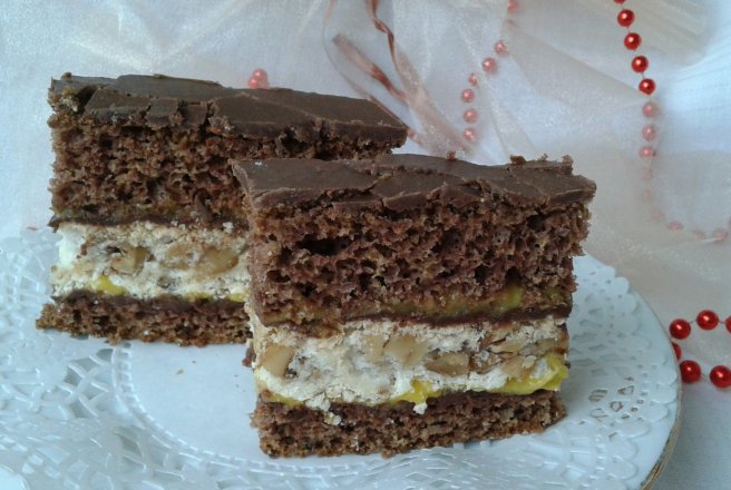 MOD DE PREPARARE RETETA Prajitura cu blat de cacao si bezea cu nuca: