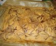 Intr-o tava tapetata cu hartie de copt ( 35/25) turnam compozitia, oprim un pic din compozitie si amestecam cu o lingura de cacao, apoi turnam si compozitia cu cacao, cum se va vedea in fotografie. Dam la cuptorul preancalzit, cca 10 minute, apoi scoatem tava si punem capsunile care au fost tavalite prin zahar. Bagam tava din nou la cuptor, este gata cand trece testul scobitorii.