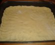 Framantam pana toate ingredientele se incorporeaza si obtinem un aluat nu foarte tare dar nici foarte moale ( un aluat ce se poate intinde ). Aluatul obtinut il impartim in 2 parti. O parte intindem in tava in asa fel incat pe margini sa ramana un surplus de aluat.