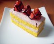 Crema: Capsunile se spala si se zdrobesc cu fruculita, punem zaharul si le punem pe foc potrivit pana se leaga ca o dulceata si lasam la racit. Cand s-au racit le pasam cu blender-ul si amestecam cu frisca batuta. Hidratam gelatina in 4 linguri de apa lasam 5 min, apoi o punem la topit pe abur si punem peste crema.
