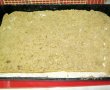 Intr-o tava 25 cm X 35 cm, unsa cu unt si tapetata cu hartie de copt (faina) turnam pandispanul cremos si il nivelam cu o lingura.