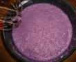 zdrobim restul de afine si amestecam cu zaharul, praful de budinca si laptele.