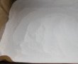 Tapetam tava cu hartie de copt si intindem jumatate din cantitatea de amestec uscat, nivelam.