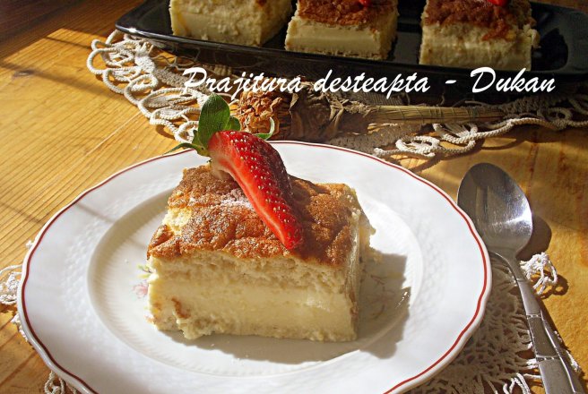 Azi va propun o reteta Dukan absolut minunata. Prajitura desteapta/inteligenta/isteata, cum vreti voi sa o numiti. Probabil fiecare cunoaste varianta originala a acestei prajituri, eu am pregatit-o de multe ori si va pot confirma ca varianta Dukan e foarte apropiata la gust de original. E o prajitura simpla, rapida, delicioasa.