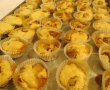 Cu ajutorul unei lingurite am pus gramezi mici din aluat in forme de briose pentru ca nu mai aveam hartie de copt, altfel asezati gramezile de aluat direct in tava in care ati pus hartie de copt.Am asezat toate formele de briose intr-o tava si am introdus la cuptor. La cuptor trebuie sa stea 10, maxim 15 minute.