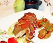 Friptura se servește fierbinte împreună cu merele, acompaniate de pastă de merișoare.