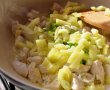 Lasam sa se caleasca toate in sucul propriu apoi adaugam 1/2 cana de apa, saram si piperam si lasam sa fiarba toate aprox 10 minute.