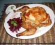 Puiul bine spalat se aseaza pe un blat de lemn unde il condimentam atat cat ne place.Taiem lamaile in 4 si umplem puiul cu ele. Pregatim un vas pentru cuptor, punem puiul intreg si-l lasam cca 1 ora si jumatate (in functie de cat de patruns sau suculent ne place) la cuptor intorcandu-l pe ambele parti. Scoatem puiul bine rumenit.
