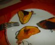 Intre timp tai dovleacul felii, il speli si il asezi intr-o tava cu hartie pentru copt.