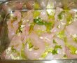 2. Peste bucatile de pui turnam sosul din lamaie si menta, saram si piperam so dam totul la cuptor ptr. 20 min; din cand in cand stropim puiul cu sos.