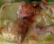 Dupa ce s-a rumenit frumos pe ambele parti o scoatem, punem smantana peste cartofi si amestecam cu grija sa nu se sfarame cartofii, punem din nou carnea si mai dam la cuptor vreo 10 minute sa se formeze sosul de smantana.
