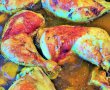 Punem tava la cuptor pana se rumenesc pulpele si avem grija sa le stropim cu sosul din tava de cate ori pe parcursul coacerii.