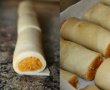 - Fiecare rulou (strudel) il taiem usor (ca pe paine, fara apasare) cu o lungime de aprox. 8 cm.