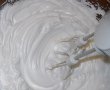 Blat: Mixam albusurile spuma cu un praf de sare. Adaugam zaharul in 3-4 reprize si mixam in continuare pana albusurile vor deveni ca o bezea tare si lucioasa. Amestecam nucile cu faina si le incorporam in bezea amestecand usor cu o spatula.Tapetam o tava mare( am folosit tava de la aragaz) cu hartie de copt si intindem bezeaua.Dam tava la cuptorul preincalzit la foc mediu pentru aproximativ 25 de minute,pana bezeaua se va intari si va incepe sa se rumeneasca usor pe margini.