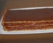 Asamblare: Taiem blatul (racit) in trei bucati egale, pe verticala. Pe un platou asazam prima bucata de blat si intindem jumatate din cantitatea de crema (calduta). Asezam al doilea blat si intindem restul de crema. Peste al treilea blat vom turna glazura de ciocolata. Decoram cu nuci prajite si tocate grosier. Dam prajitura la frigider si o taiem a doua zi (eu nu am avut rabdare si am taiat-o dupa 2 ore..doar un colt :)). Deliciu!!