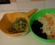 3.Intr-un bol am pus legumele,castravetii taiati cubulete mici,maslinele,maioneza (am pastrat 2 lg pentru ornat) si am mestecat.Am potrivit de sare.