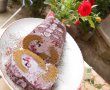O rulada mov foarte buna si aratoasa. Eu am decorat-o cu mure dar pana cand am scos-o pentru a fi feliata si mancata murele de deasupra au disparut , iar fiica-mea avea o figura de nevinovat :) .