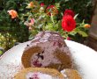 (5 minute), rasturnam blatul pe un prosop de bucatarie curat si rulam . Trebuie rulat blatul cat este cald , altfel se va rupe.
