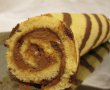Luam din aceasta compozitie 3-4 linguri si le amestecam cu lingurita de cacao. Punem hartie de copt intr-o tava si din compozitia cu cacao trasam dungi oblice . Introducem tava in cuptorul incins pentru 3-4 minute. Scoatem tava din cuptor si peste dungile maro turnam compozitia alba. Introducem din nou tava la cuptor pentru 15-20 de minute.