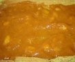 Dupa ce foaia de pandispan s-a racit, o desfacem din prosop, intindem pasta de caise pe toata suprafata foii, rulam cu grija si dam la rece.